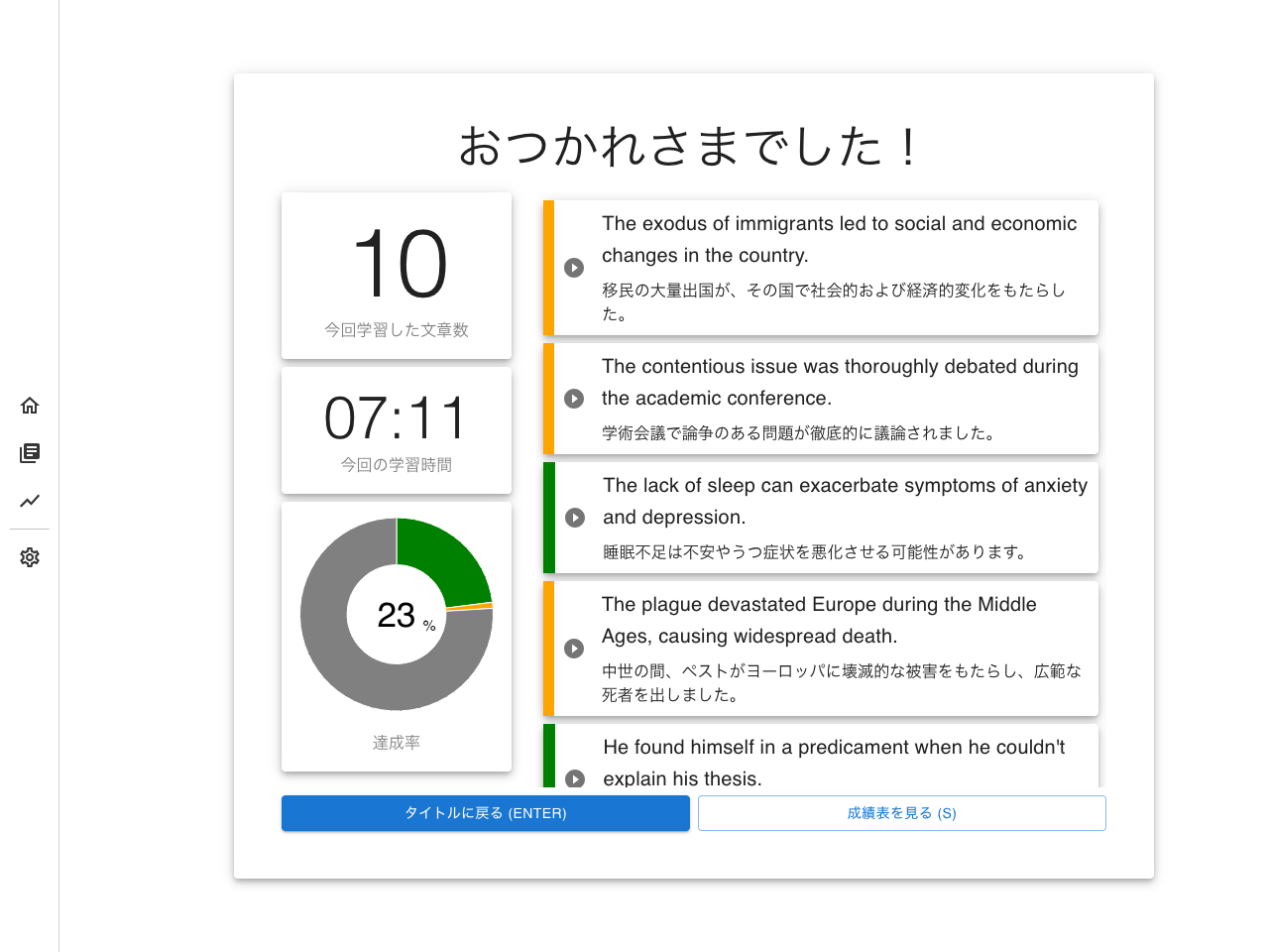 学習終了時の画面