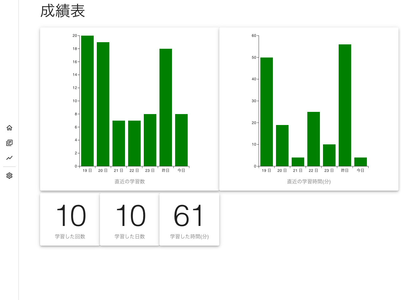 成績表の画面